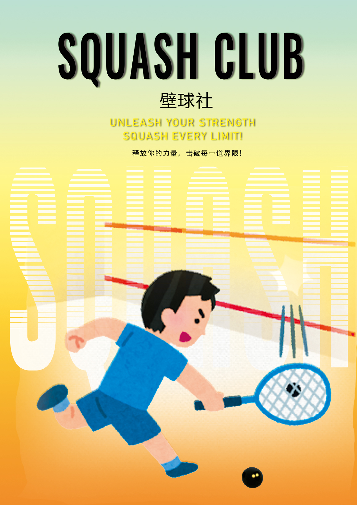 The purpose of the Club is to promote the sport of squash among the Xi'an Jiaotong-Liverpool University community, to provide opportunities for play at all skill levels, to organize training and competitive events, and to foster sportsmanship and camaraderie among its members.