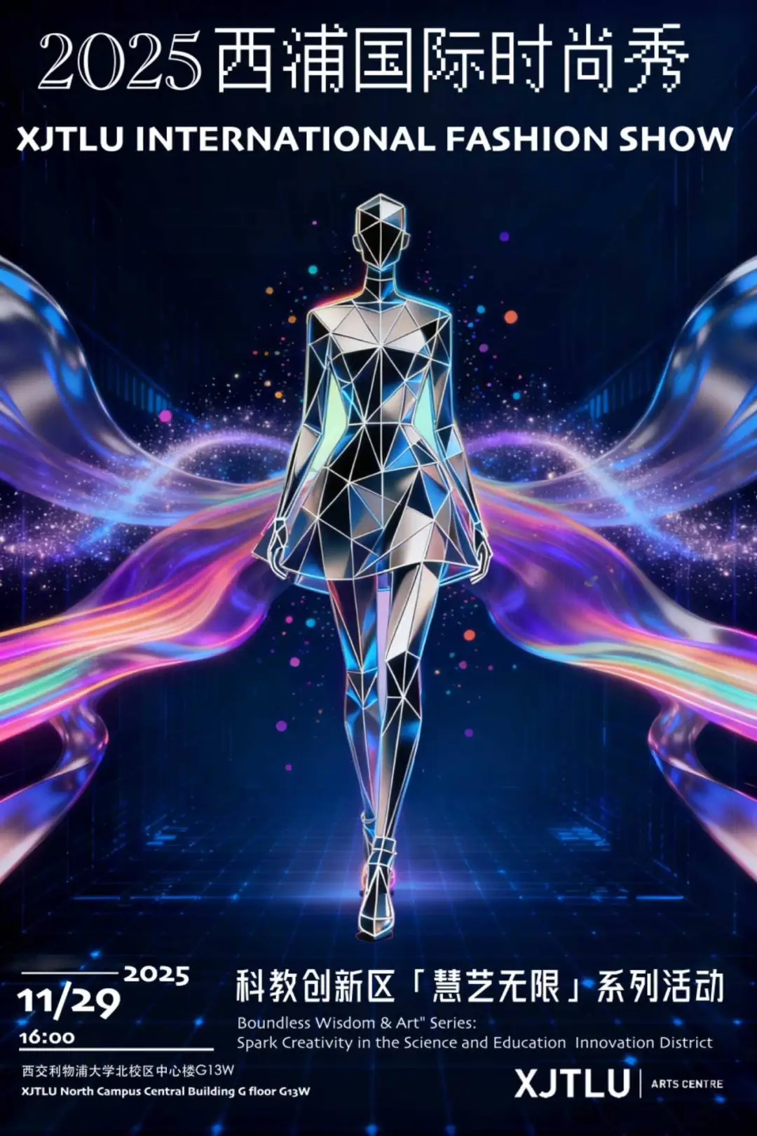本次国际时尚秀汇聚全球学子,构建跨文化对话平台。通过中国传统美学与全球设计理念的融合,既呈现传统与创新碰撞的视觉盛宴,更彰显西浦的国际化底蕴与包容精神。