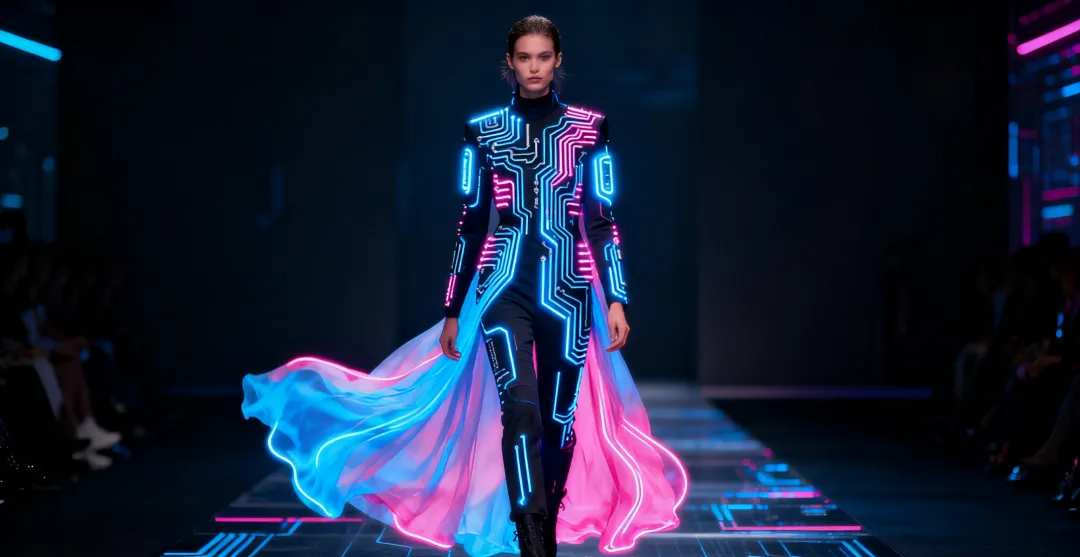 工业设计学生将人机交互技术融入服装,创造出能感知响应穿戴者状态的智能可穿戴装置,为时尚秀注入科技生命力。