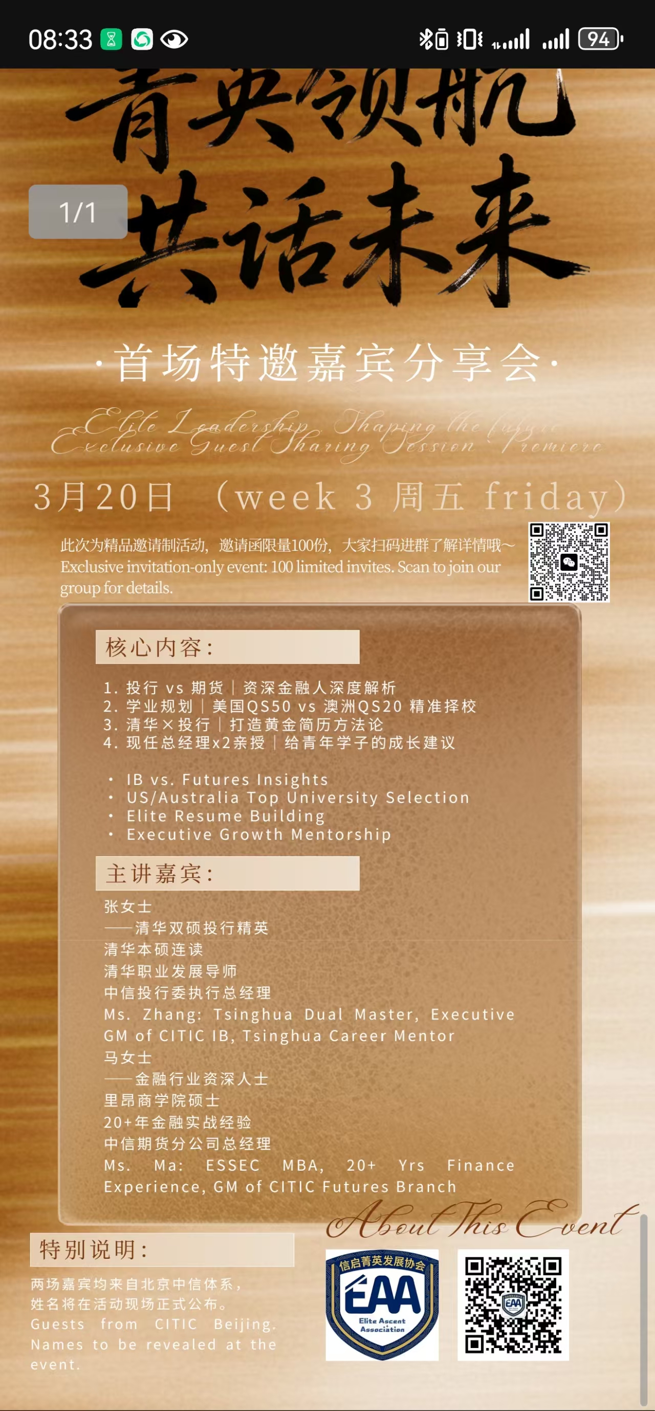 此次活动邀请到现任中信证券投行委执行总经理--张女士,和现任中信北京期货分公司总经理--马女士,来我校进行行业分享,包含:投行解析,国家发展规划,升学建议,简历专场等内容。