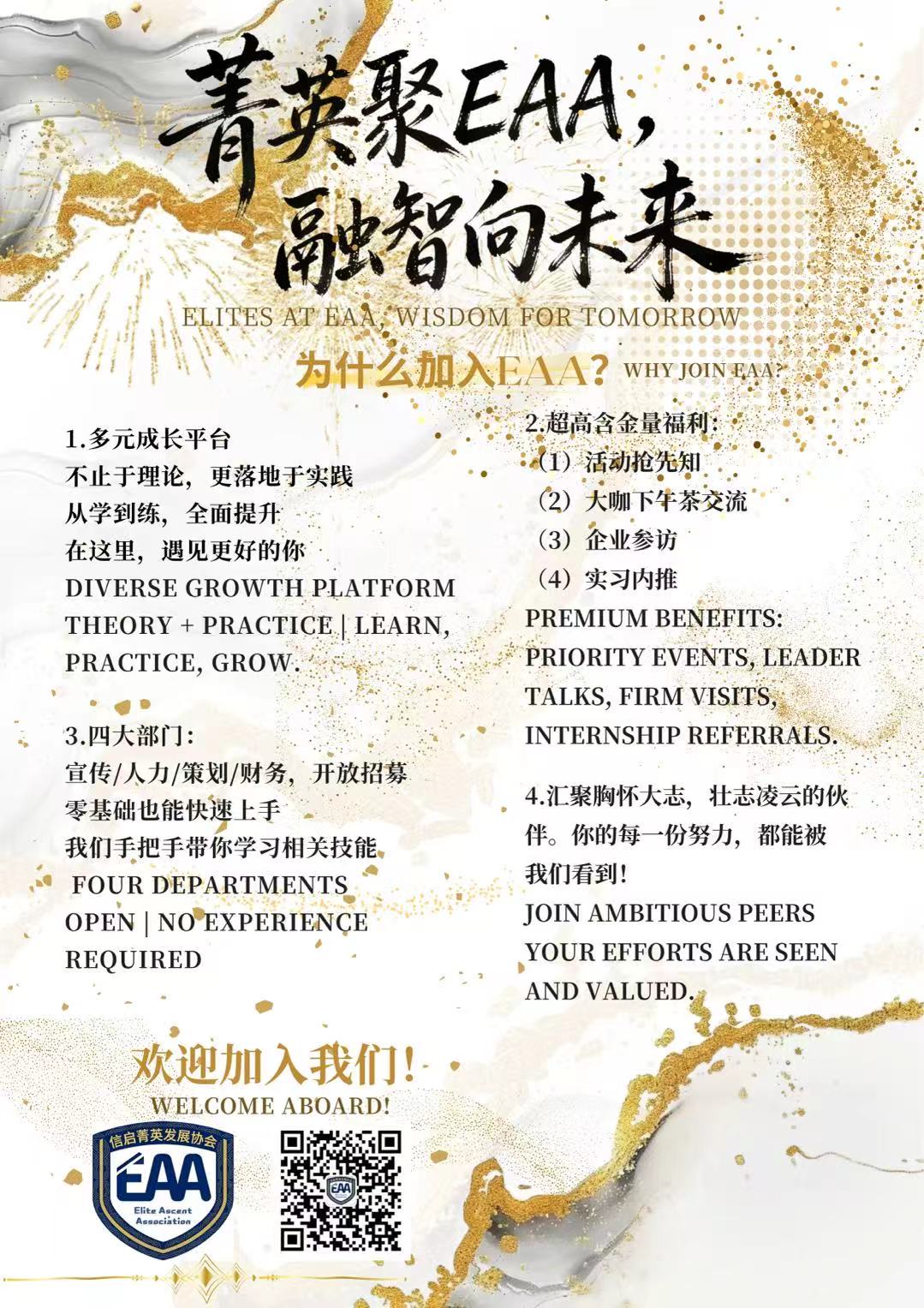 春招,百团大战 EAA作为新星社团,将参加2026.3.28日百团大战,招募更多志同道合的同学,为社团增添活力与新鲜血液