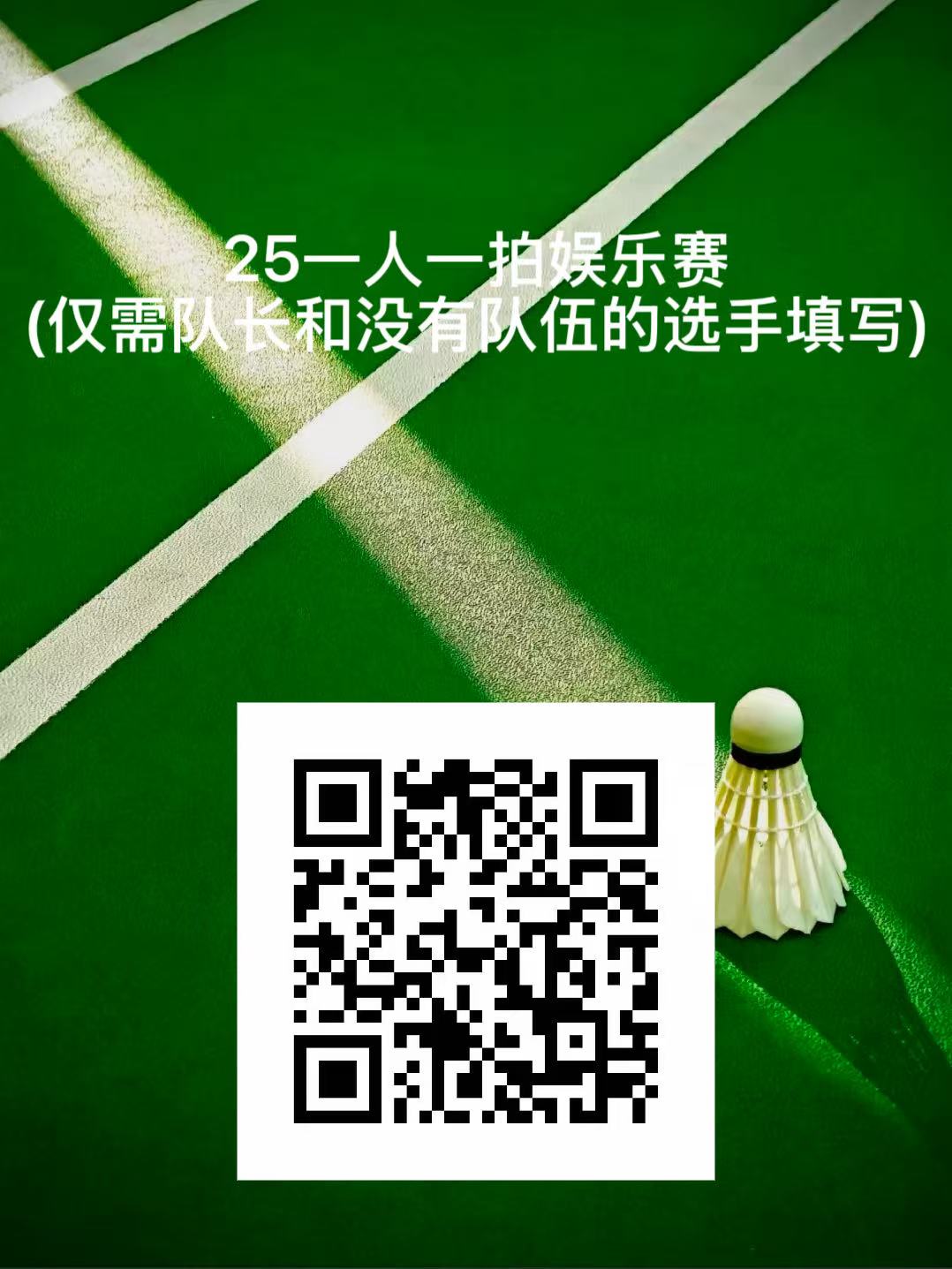 2025年西交利物浦大学羽毛球娱乐赛将于10.15和10.18在学校羽毛球馆举行。本次比赛内容为一人一拍,全校学生均可参赛。报名请扫码